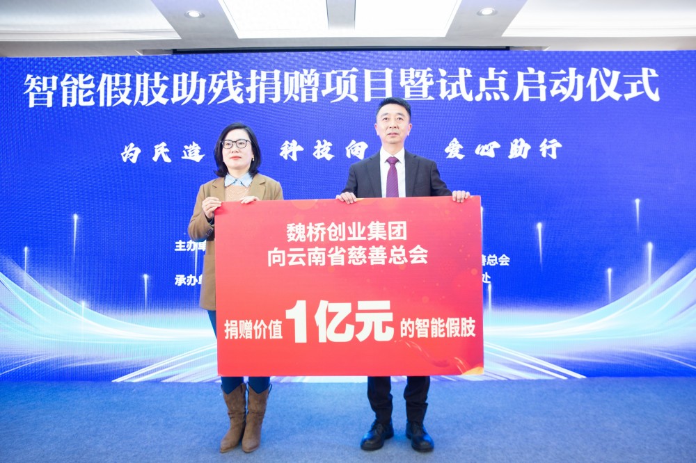 此次活动中,魏桥创业集团向云南省慈善总会捐赠价值1亿元的智能假肢,将惠及全省2000名肢残群众,帮助他们重建肢体功能,更好地融入社会、实现就业。云南省人大常委会副主任、省慈善总会会长王树芬,省民政厅、省残联相关领导,魏桥创业集团代表及受助对象代表共同见证这一时刻。